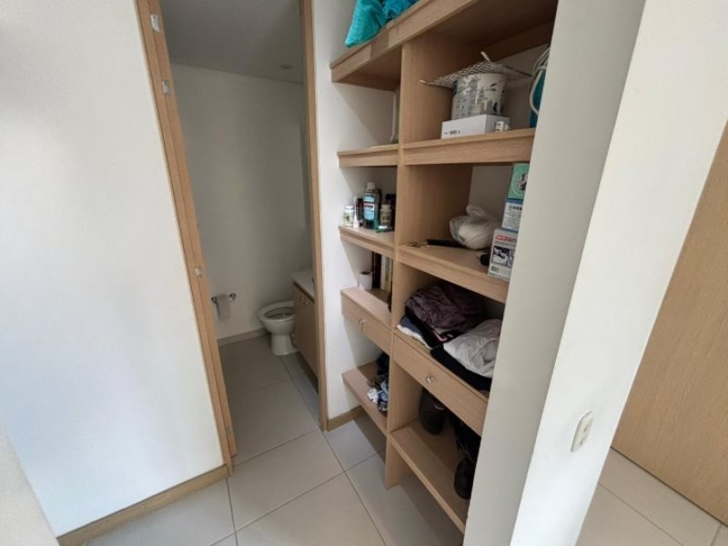 Este cómodo espacio cuenta con 3 alcobas, 1 vestier, 2 closets en madera, 2 baños cabinados, sala comedor, cocina integral, extractor, mesón en marmol, balcón, zona de ropas, citofono y esta en un 15 avo piso.