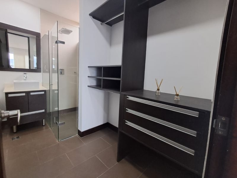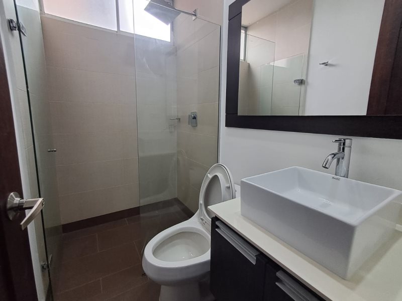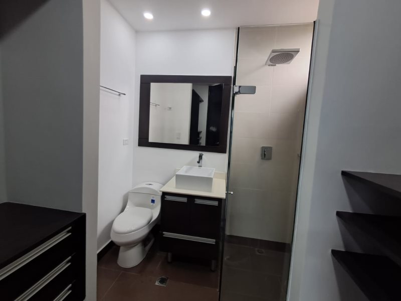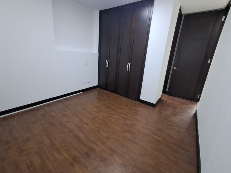 Está dividido en tres alcobas amplias, una de ellas con vestier y dos con closets. Cuenta con cinco baños, de los cuales dos están en las habitaciones y tres son baños sociales. Además, dispone de sala-comedor, cocina integral con horno, extractor, calentador a gas, barra americana y red de gas, balcón con vistas encantadoras, zona de ropas independiente, shut de basuras, dos parqueaderos cubiertos y dos cuartos útiles.