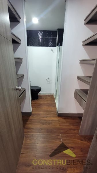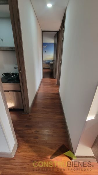 El inmueble está distribuido en tres habitaciones, dos closets, vestier en la habitación principal, dos baños, sala-comedor, cocina integral, pisos flotantes en PVC en todo el apartamento y balcón con vista exterior. Además, cuenta con parqueadero y cuarto útil.