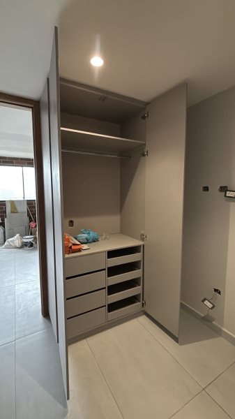 El inmueble cuenta con una distribución moderna y funcional, conformada por dos habitaciones, dos baños, un clóset, un vestier, sala comedor, cocina integral, zona de ropas, balcón, cuarto útil y parqueadero cubierto.