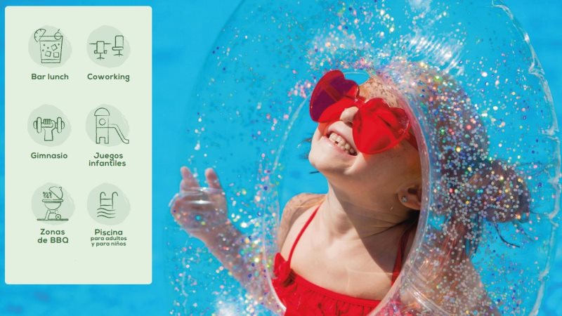 La unidad residencial contará con portería permanente, piscina para adultos y niños, gimnasio, coworking, salón social, zona BBQ, sendero ecológico, juegos infantiles y torre de parqueaderos comunes de 8 pisos con ascensor, ideales para disfrutar en familia.