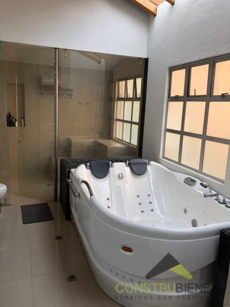 Cuenta con cuatro habitaciones, tres de ellas con baño privado y vestier, más dos baños sociales, dispone de sala, comedor, biblioteca o estudio, cocina integral con extractor, horno y gabinetes, así como una chimenea que brinda un ambiente cálido y acogedor ideal para reuniones familiares o espacios de descanso. Tiene también un jardín interno que aporta frescura y conexión con la naturaleza, habitación de servicio, zona de ropas, balcón, turco, jacuzzi y parqueadero para cuatro vehículos.