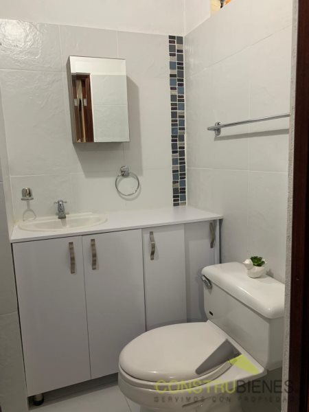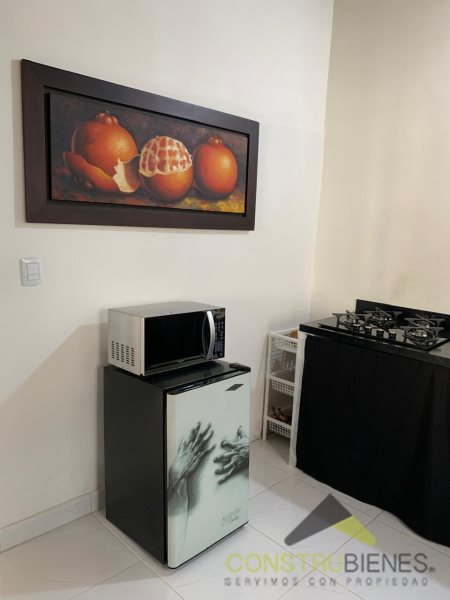 El apartamento independiente tiene 20 metros cuadrados distribuidos en dos niveles; en la primera planta se ubican la cocina, la sala y la zona de ropas, y en la segunda planta hay dos alcobas, un baño y un balcón.