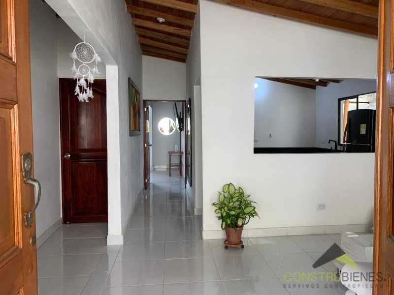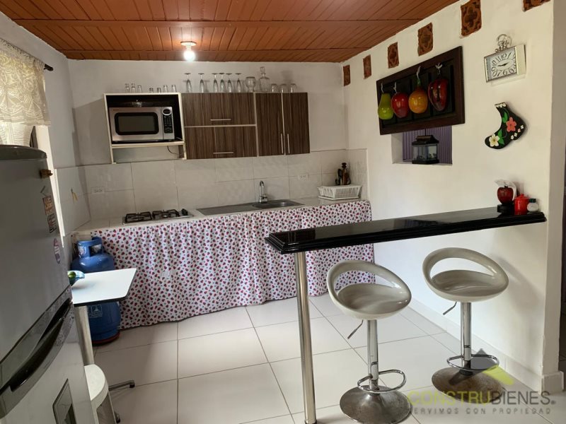 La casa principal tiene dos habitaciones, un vestier, sala comedor, cocina sencilla con mesón en mármol, dos baños, zona de ropas, un cuarto útil, parqueadero con capacidad para tres carros y zona verde. Además, dispone de toda la red de gas lista para empalme con EPM.